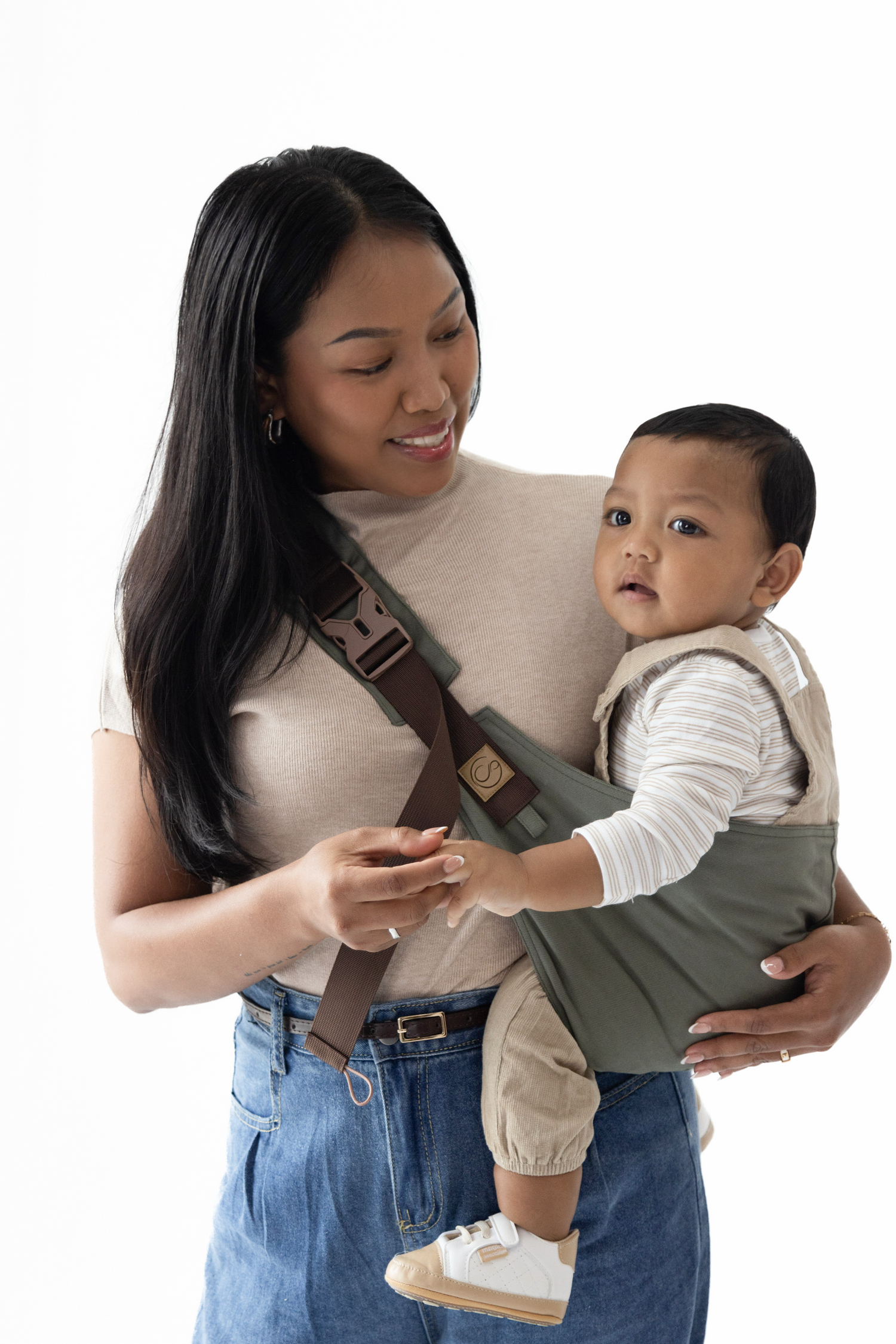Our baby carriers come in two sizes, designed to grow with your little one: